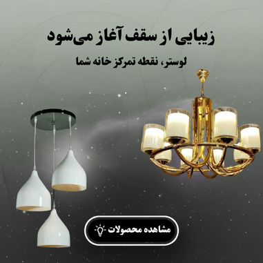 ست لوستر 20 شاخه ای + آباژور کنار سالنی + لوستر مینیمال آشپرخانه ای